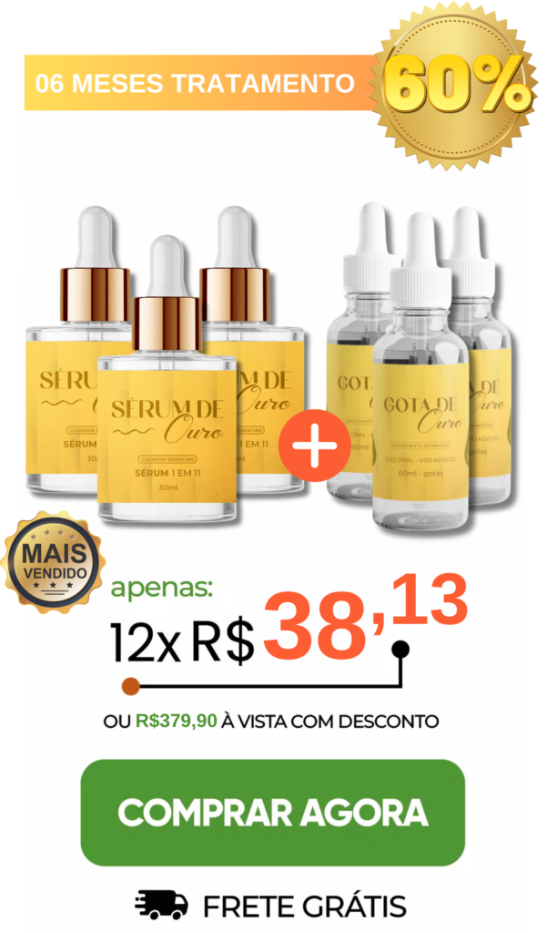 O kit mais recomendado e vendido é o de 6 meses, uma vez que, apesar de se obter resultados imediatos com o uso do Sérum de Ouro + Gotas de Ouro, os melhores benefícios são obtidos com o uso contínuo do Tratamento.