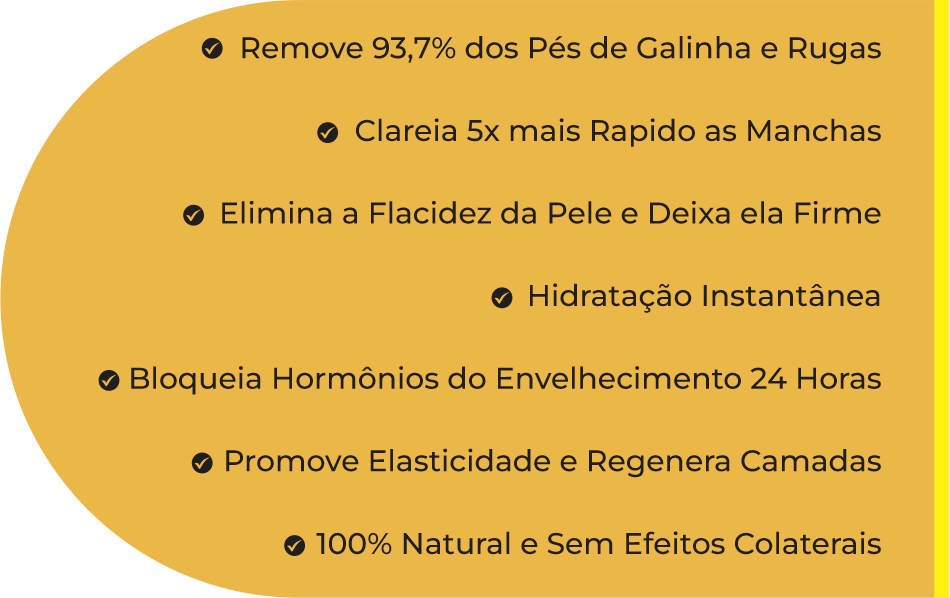 Bem mais potente do que o Colágeno normal, é o único comprovadamente focado em atingir só a pele e os sinais de envelhecimento. Firmando a pele flácida e dando 3 benefícios em 1 composto: Nutre, Repara e Aumenta a firmeza da Pele!